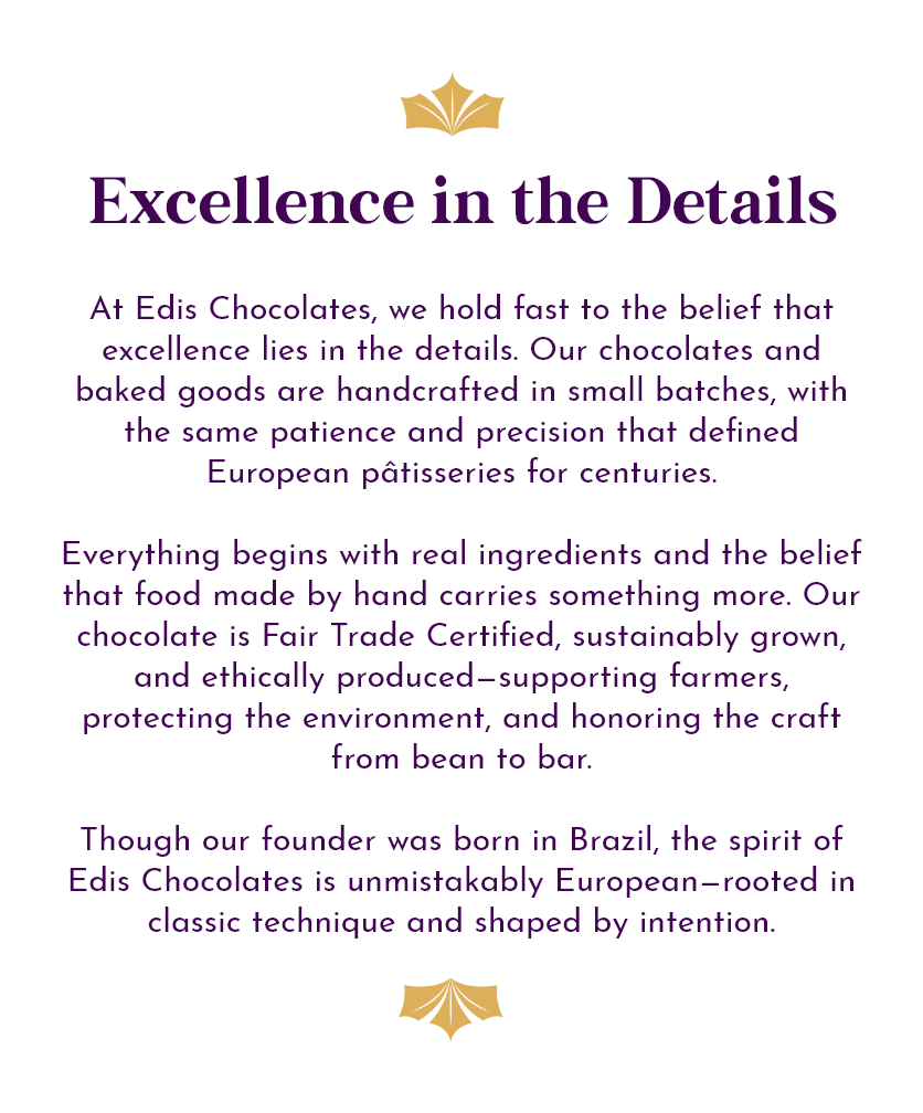Join our exclusive newsletter for mouthwatering updates, special offers, and delectable surprises. Sign up now and never miss a bite of Edis Chocolates’ latest creations!