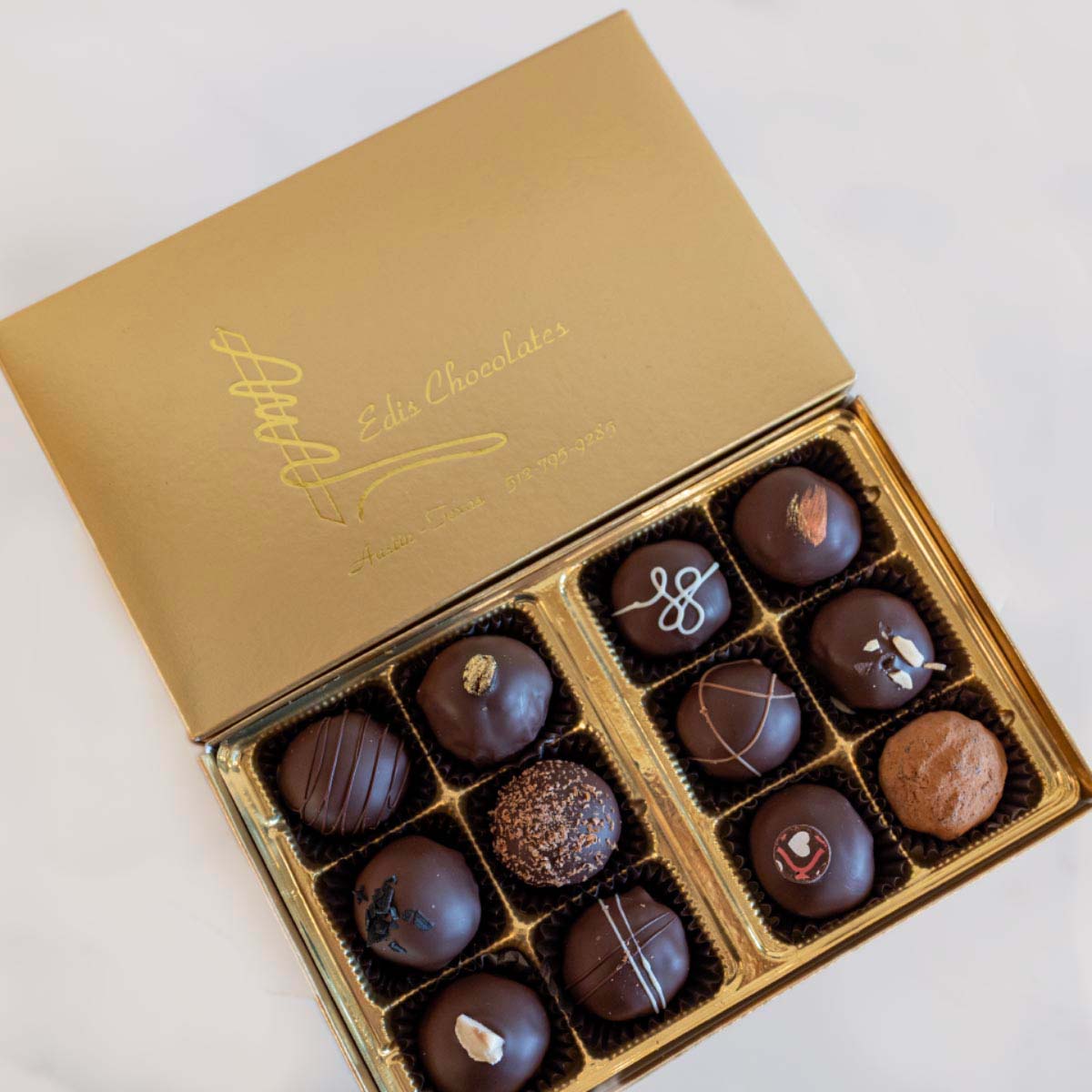 Exquisitely crafted hand rolled truffles, where premium Belgian chocolate meets artisanal perfection in every indulgent bite. (GF)