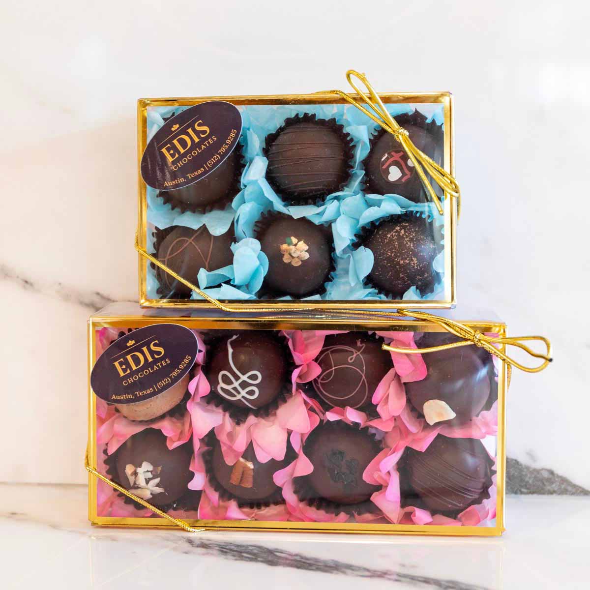 Exquisitely crafted hand rolled truffles, where premium Belgian chocolate meets artisanal perfection in every indulgent bite. (GF)